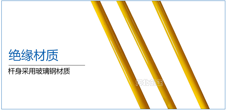1、絕緣桿:采用絕緣性能及機械強度強、重量輕、經(jīng)防潮處理的環(huán)氧樹脂管制成。