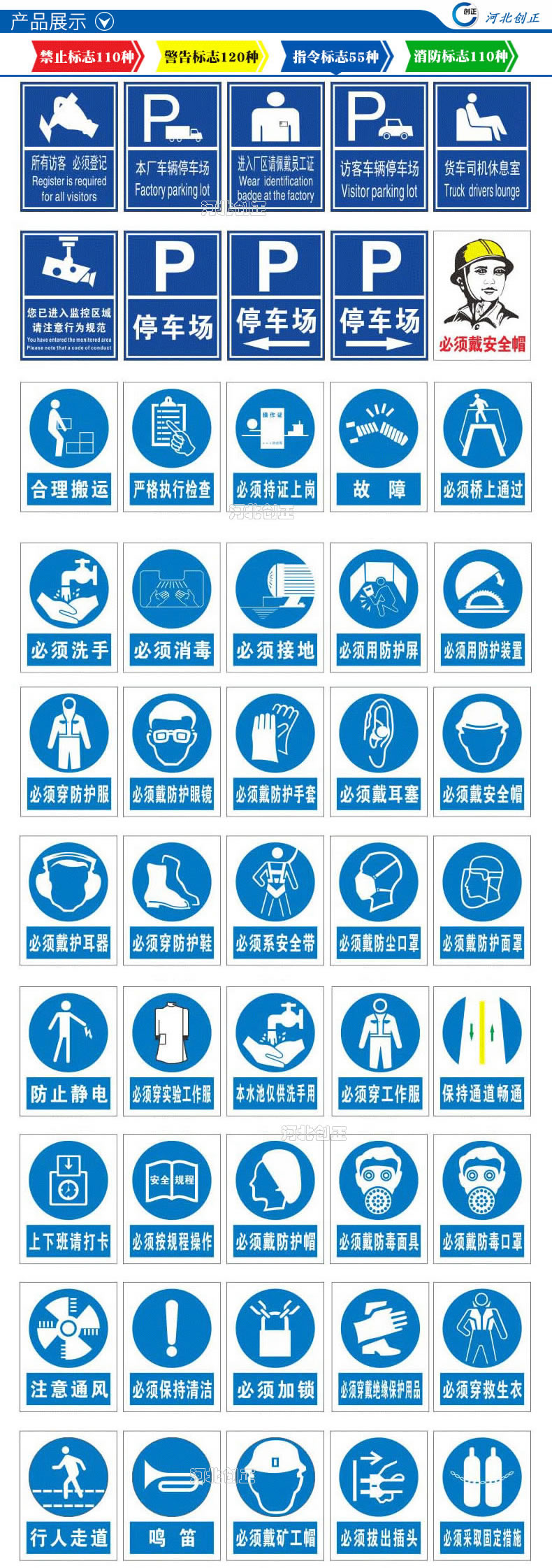 2、產品內容:禁止、指令、提示、線路相位、消防、通信、交通等。