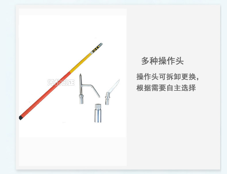 4、產(chǎn)品特點:重量輕,易攜帶,使用方便,可根據(jù)使用空間伸縮定位長度,克服了接扣式拉閘桿因長度固定而使用不便的缺點。